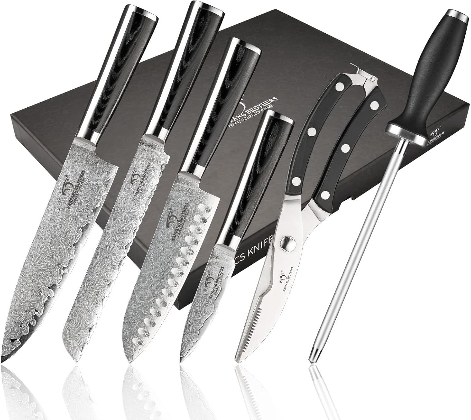 クーポンコード:K8IQLWHPで表記価格になります。67層VG10ダマスカス鋼を採用し、硬度はHRC60±2で心地よい切れ味が長持ちします。19.2cm牛刀包丁、16.2cm三徳包丁、19.7cmパン切り包丁、8.2cmペティナイフ、キッチンハサミ、包丁研ぎ棒のセット。クーポンが使用できない場合は終了していますのでご了承下さい。表記価格は掲載時の価格です。時間差で売り切れや値上がりしている場合がありますので、その際はご了承下さい。