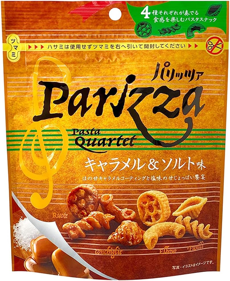 アウトレット特価!通常価格2,178円の商品です。1袋あたり164円。4種のマカロニパスタ使用。濃厚なキャラメルの甘さと塩味のハーモニーとなっています。ハサミ要らずのスマートチャック袋です。デュラム小麦のセモリナを使用した、4種類のショートパスタをカリッと揚げたサクサク食感のパスタスナックです。ほの甘キャラメルでコーティングしたキャラメル味と程よい塩味、それぞれの味わいを食感の違いとともに楽しめます。Amazonアウトレットは、倉庫内で梱包に傷を負った商品・返品された商品のうち、商品の状態が良いにも関わらず、基準では新品として販売しないものをアウトレット品という扱いで、お手頃な価格で販売しています。また、倉庫内で保管され、賞味期限が近づいた食品をお手頃な価格で販売しています。Amazonプライム会員又は3,500円以上の注文で送料無料。Amazonプライム会員ではない方で3,500円に満たない場合は、本州・四国は送料410円、北海道・九州・沖縄・離島は送料450円です。