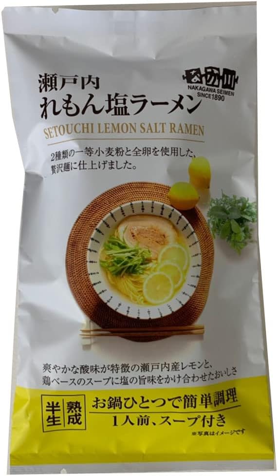 アウトレット特価!1食あたり173円。麺づくり一筋70余年、瀬戸内麺工房なか川のご当地麺として人気の“瀬戸内れもん塩ラーメン”。一昼夜かけてじっくり冷風乾燥させた「本格熟成半生麺」。瀬戸内産のレモンを使用したさっぱりとしたレモン塩スープが優しい味わい。別茹で不要なのでお鍋一つで簡単に本格的なラーメンが食べられます。Amazonアウトレットは、倉庫内で梱包に傷を負った商品・返品された商品のうち、商品の状態が良いにも関わらず、基準では新品として販売しないものをアウトレット品という扱いで、お手頃な価格で販売しています。また、倉庫内で保管され、賞味期限が近づいた食品をお手頃な価格で販売しています。Amazonプライム会員又は3,500円以上の注文で送料無料。Amazonプライム会員ではない方で3,500円に満たない場合は、本州・四国は送料410円、北海道・九州・沖縄・離島は送料450円です。