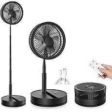 人気商品につき再掲します。カラー2色から選べます。折りたたみデザイン、持ち運びに便利な小型サイズ、直径23インチ、高さ調節可能(折りたたみ時10.5cm、最大伸長時105cm)。7200mAh充電式バッテリーを内蔵し、充電しながらの使用をサポート。USB充電式で、フル充電で速度1は23.5時間、速度2は9.5時間、速度3は5.5時間使用できます。4段階の風速調節が可能。リモコン付属。Amazonプライム会員又は3,500円以上の注文で送料無料。Amazonプライム会員ではない方で3,500円に満たない場合は、本州・四国は送料460円、北海道・九州・沖縄・離島は送料500円です。