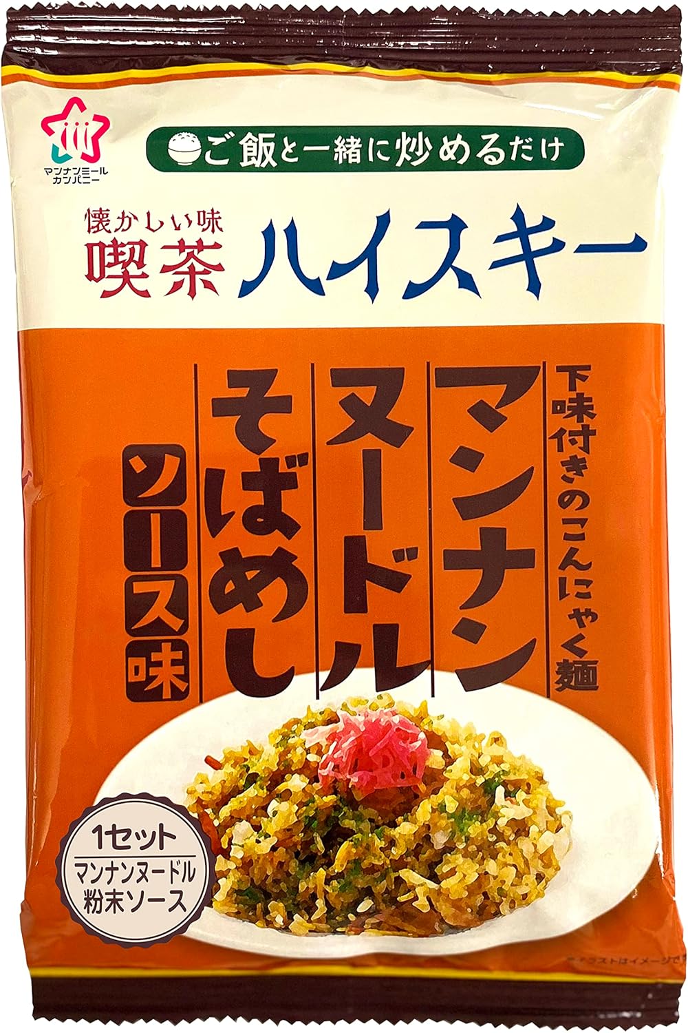 アウトレット特価!どこか懐かしさを感じる純喫茶の「そばめし」を「マンナンヌードル」でヘルシーに再現。麺がマンナンヌードルなので従来のそばめしに比べてとってもヘルシー。お茶碗1杯分のご飯を用意して炒めるだけですぐにできます。お味はスパイシーで香ばしい味がクセになる定番のソース味です。Amazonアウトレットは、倉庫内で梱包に傷を負った商品・返品された商品のうち、商品の状態が良いにも関わらず、基準では新品として販売しないものをアウトレット品という扱いで、お手頃な価格で販売しています。また、倉庫内で保管され、賞味期限が近づいた食品をお手頃な価格で販売しています。Amazonプライム会員又は3,500円以上の注文で送料無料。Amazonプライム会員ではない方で3,500円に満たない場合は、本州・四国は送料410円、北海道・九州・沖縄・離島は送料450円です。
