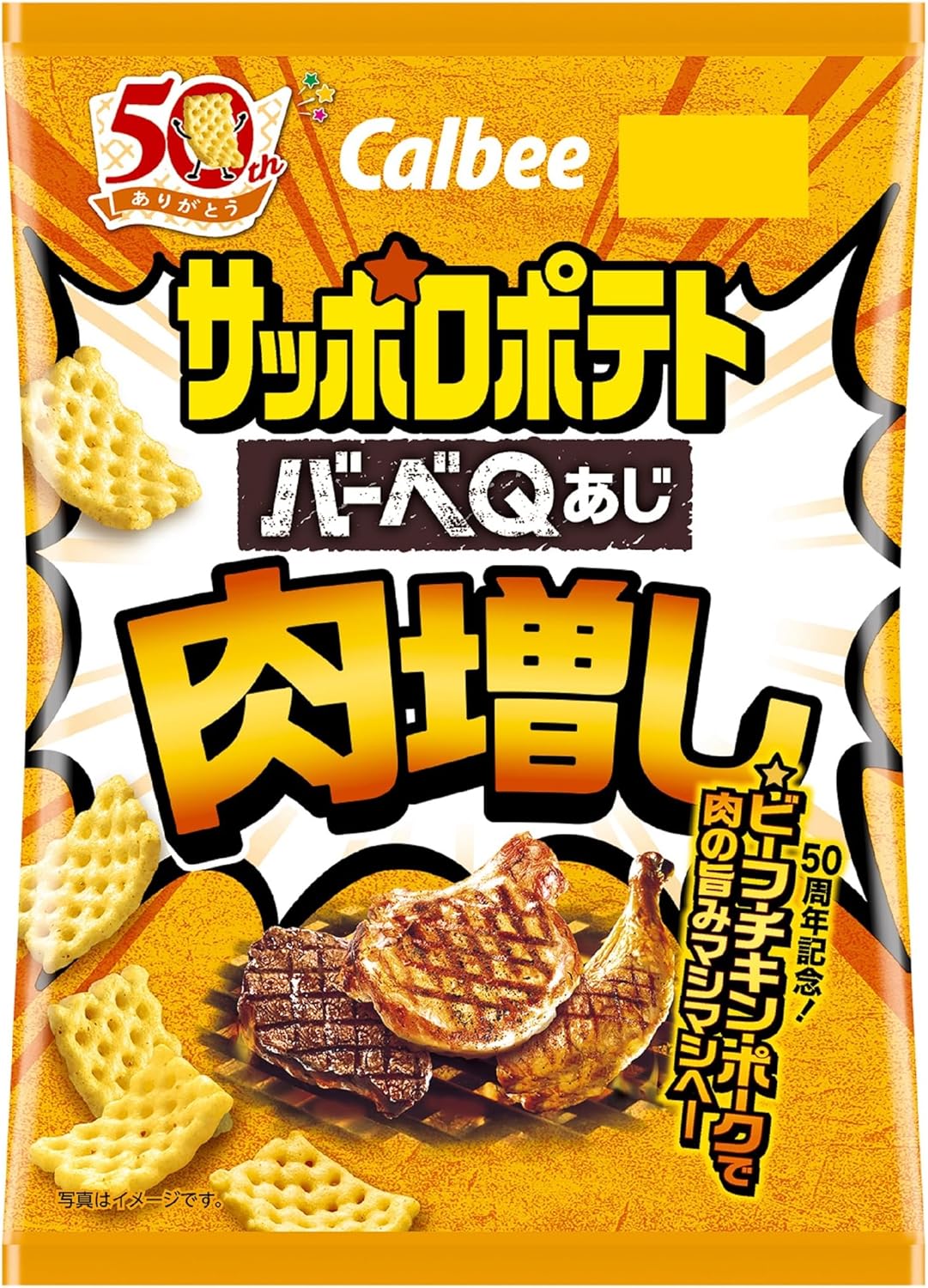 商品ページ内のクーポンで表記価格になります。1個あたり88.5円。発売50周年記念商品。いつもの「サッポロポテトバーベQあじ」より肉増しの味わい。ビーフ・チキン・ポークの肉の旨みが楽しめます。クーポンが使用できない場合は終了していますのでご了承ください。Amazonプライム会員又は3,500円以上の注文で送料無料。Amazonプライム会員ではない方で3,500円に満たない場合は、本州・四国は送料410円、北海道・九州・沖縄・離島は送料450円です。表記価格は掲載時の価格です。時間差で売り切れや値上がりしている場合がありますので、その際はご了承下さい。