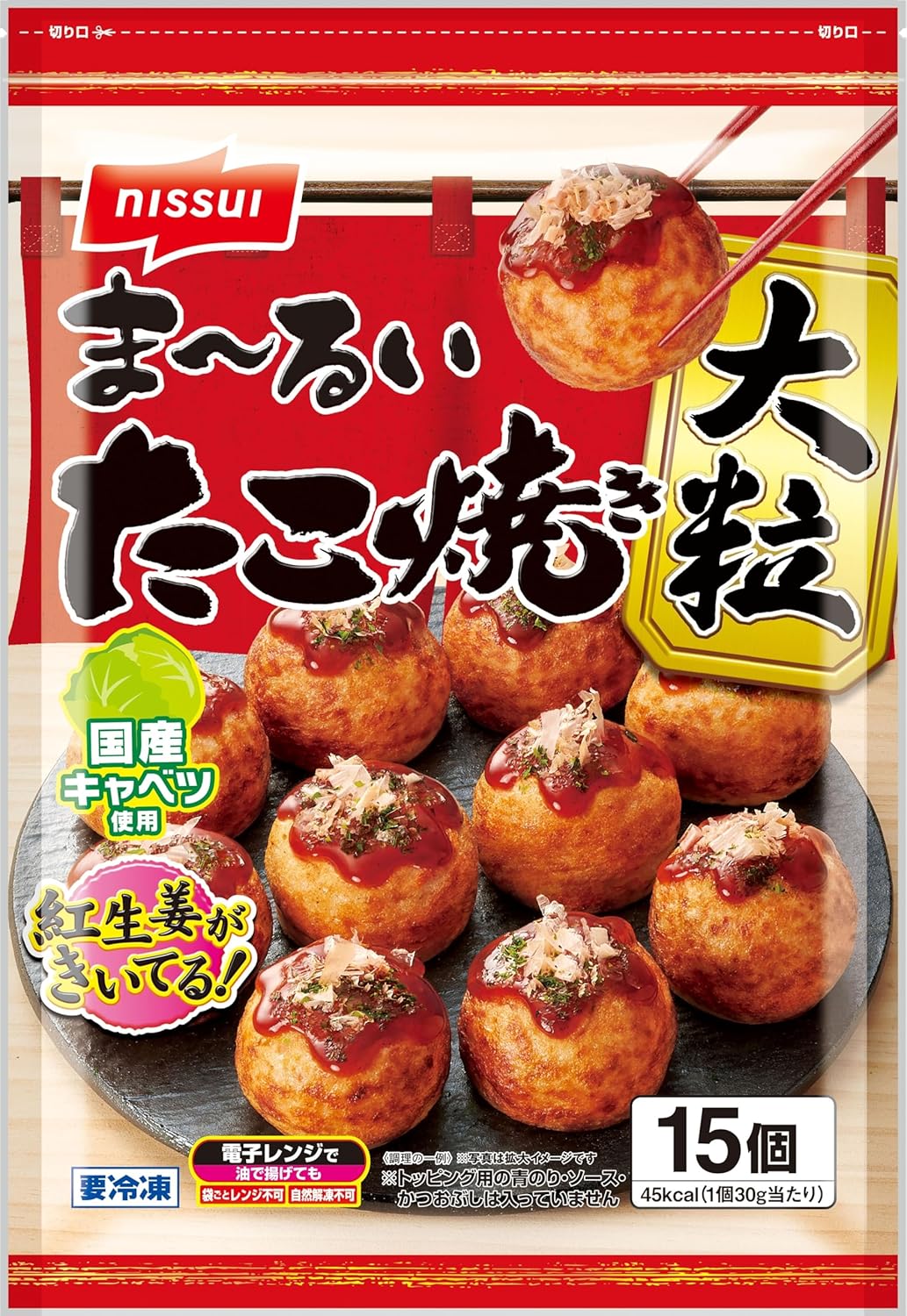 ふっくらとろーり、紅生姜の風味がきいたたこ焼きです。大きめのたこが入った、食べ応え抜群のま~るい大粒のたこ焼きです。やまいもをたっぷり使用し、ふっくらとろ~りとした食感に仕上げています。国産キャベツを使用しています。甘みのある生地に紅しょうがの風味が効いています。保存に便利なチャック付き袋です。Amazonプライム会員又は3,500円以上の注文で送料無料。Amazonプライム会員ではない方で3,500円に満たない場合は、本州・四国は送料410円、北海道・九州・沖縄・離島は送料450円です。表記価格は掲載時の価格です。時間差で売り切れや値上がりしている場合がありますので、その際はご了承下さい。