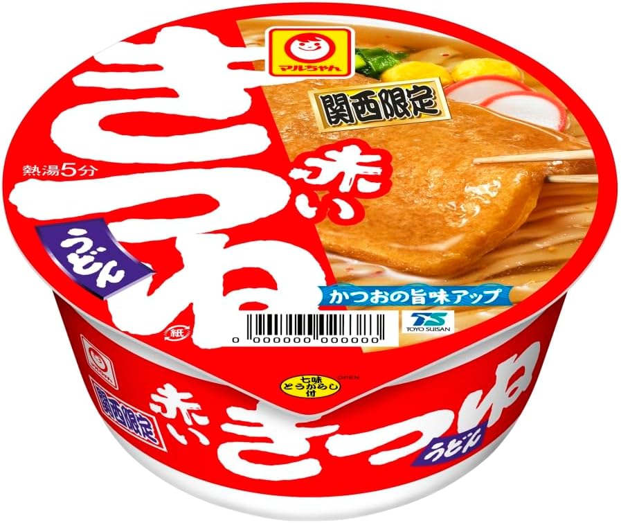 Amazonブラックフライデー特価!1個あたり120円。関西向けに仕立てたつゆは、鰹節や雑節、こんぶ、煮干し等のだしを利かせ、淡口の醤油で仕上げています。カップ麺に合う”だし”を実現するために研究を重ね、麺に負けない力強さのある”だし”本来の風味を生み出しています。コシのある太めの麺と、淡口の醤油仕立ての関西風のつゆがしっかり染み込んだ大きなお揚げが一緒に楽しめます。別添七味唐辛子(親子パック)。具材は、味付け油揚げ、かまぼこ、たまご、ねぎを使用しています。Amazonプライム会員又は3,500円以上の注文で送料無料。Amazonプライム会員ではない方で3,500円に満たない場合は、本州・四国は送料410円、北海道・九州・沖縄・離島は送料450円です。