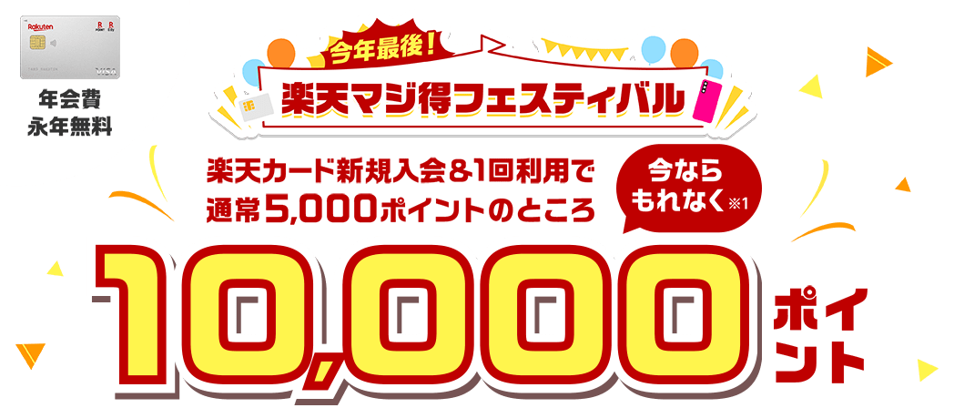 11月25日10:00までです。楽天カード入会&紹介キャンペーン開催中です。楽天での買い物だけでなく、カードでのガソリン給油や携帯の支払いなどでもポイントがつくので、上手く使うと結構ポイントが貯まります。年会費永久無料です。また、楽天カード紹介キャンペーンも開催中で、紹介した方も紹介された方もポイントがもらえます。楽天モバイルを初めての申し込みで20,000ポイントも同時開催中です。
