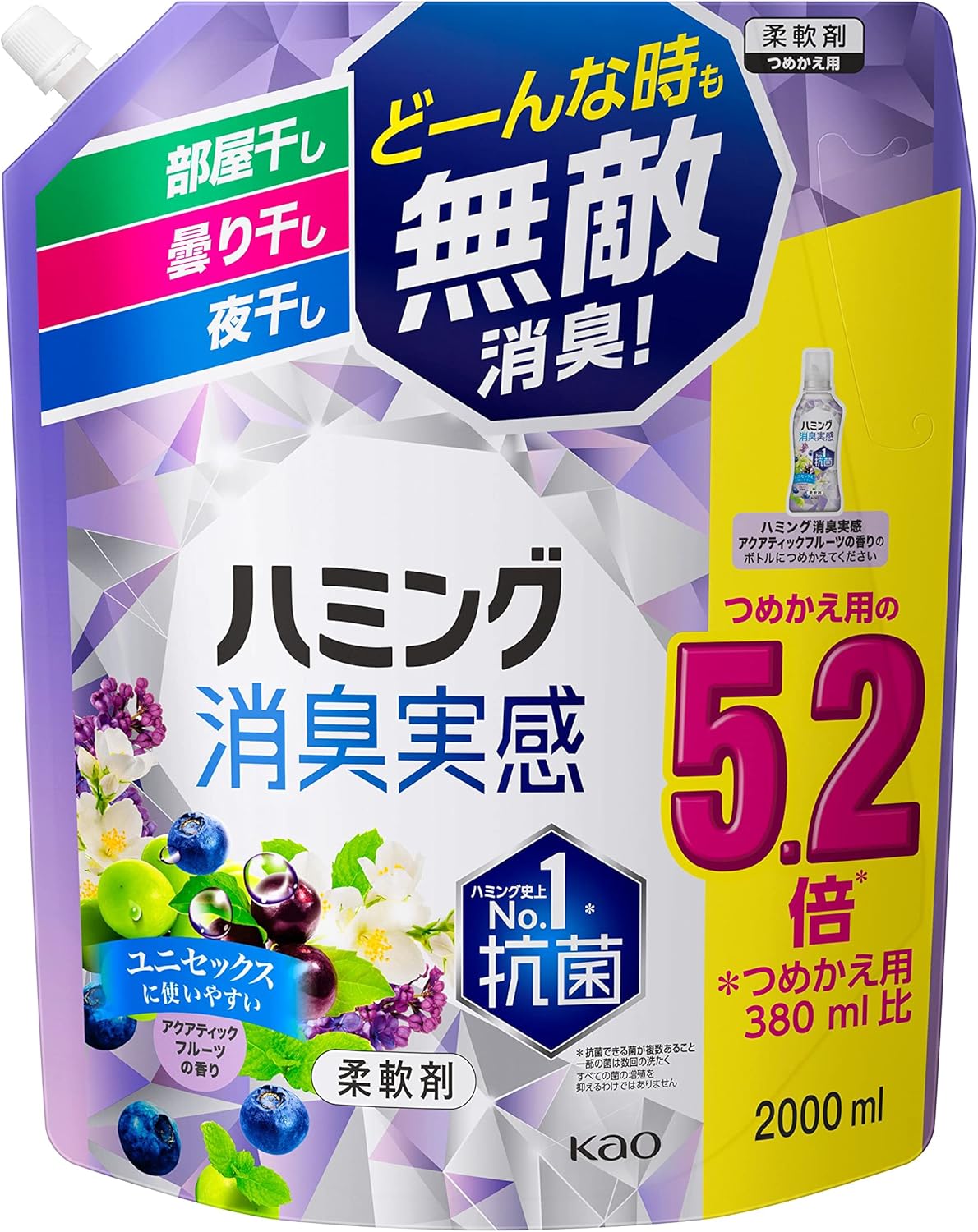 タイムセール特価&商品ページ内のクーポンで表記価格になります。定期おトク便なら更に割引になります。定期おトク便はいつでも解除できます。ニオっちゃうかも…な時ももう気にしなくてOK。部屋干し・曇り干し・夜干し・すぐ干せない時も、どーんな時も無敵消臭。ハミング史上No.1抗菌。アクアティックフルーツの香り。ニオイ戻りもブロック(着用中の汗臭、濡れ戻り臭)。洗たく槽も防カビ。花粉ブロック。クーポンが使用できない場合は終了していますのでご了承ください。Amazonプライム会員又は3,500円以上の注文で送料無料。Amazonプライム会員ではない方で3,500円に満たない場合は、本州・四国は送料410円、北海道・九州・沖縄・離島は送料450円です。