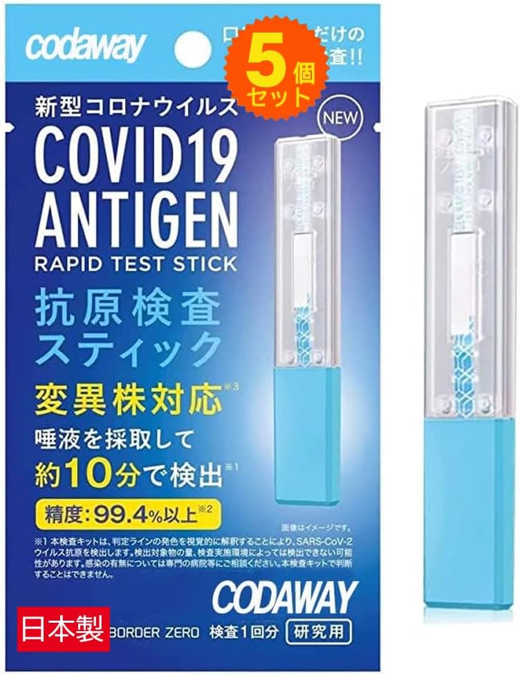 クーポンコード:IHNR6WA7で表記価格になります。口にくわえるだけの新型コロナウイルス変異株対応抗原検査キット5回分セット。このキットは疫学調査等のための試験研究を目的とするものであり、疾病等の診断を行うことを目的とするものではないため、新型コロナウイルス感染症の罹患の有無を調べる目的で使用すべき商品ではないとのことですので、ご了承の上ご購入下さい。Amazonプライム会員又は2,000円以上の注文で送料無料、それ以外は送料410円です。