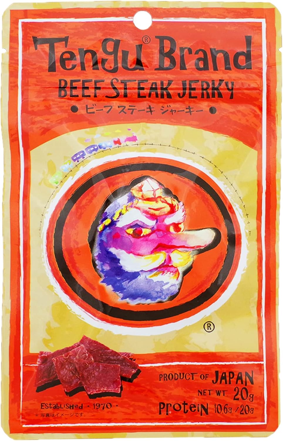 持ち運びに便利なジッパー付きパッケージ。ビーフジャーキーを食べやすい一口サイズにカット。食べやすさを重視し、しっかりとした噛み応えが感じられる適度な薄さにスライス。1970年テングブランド誕生以来初のブランドロゴマークのデフォルメ。タツノコプロ様のデザイナーによるデザイン監修。旅を意識した商品開発。Amazonプライム会員又は2,000円以上の注文で送料無料、それ以外は送料410円です。