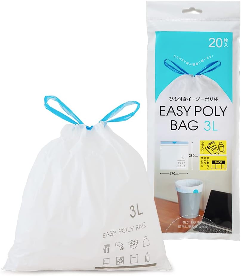 40%OFF!ひもが付いているので、袋が簡単に結べます。3Lのゴミ袋として使用できます。小物入れやショッピングバッグとしても使用出来る柄入りのちょっとおしゃれなポリ袋です。洋服の収納や買い物袋としてもおすすめです。袋の上部で結ぶので、容量いっぱいまで中身を入れられます。サイズは約縦28×横27cm。入れた物が見えにくい、乳白色の袋です。製品自体、外装袋とも燃やしても有毒なガスは発生しません。Amazonプライム会員又は2,000円以上の注文で送料無料。それ以外は送料400円です。