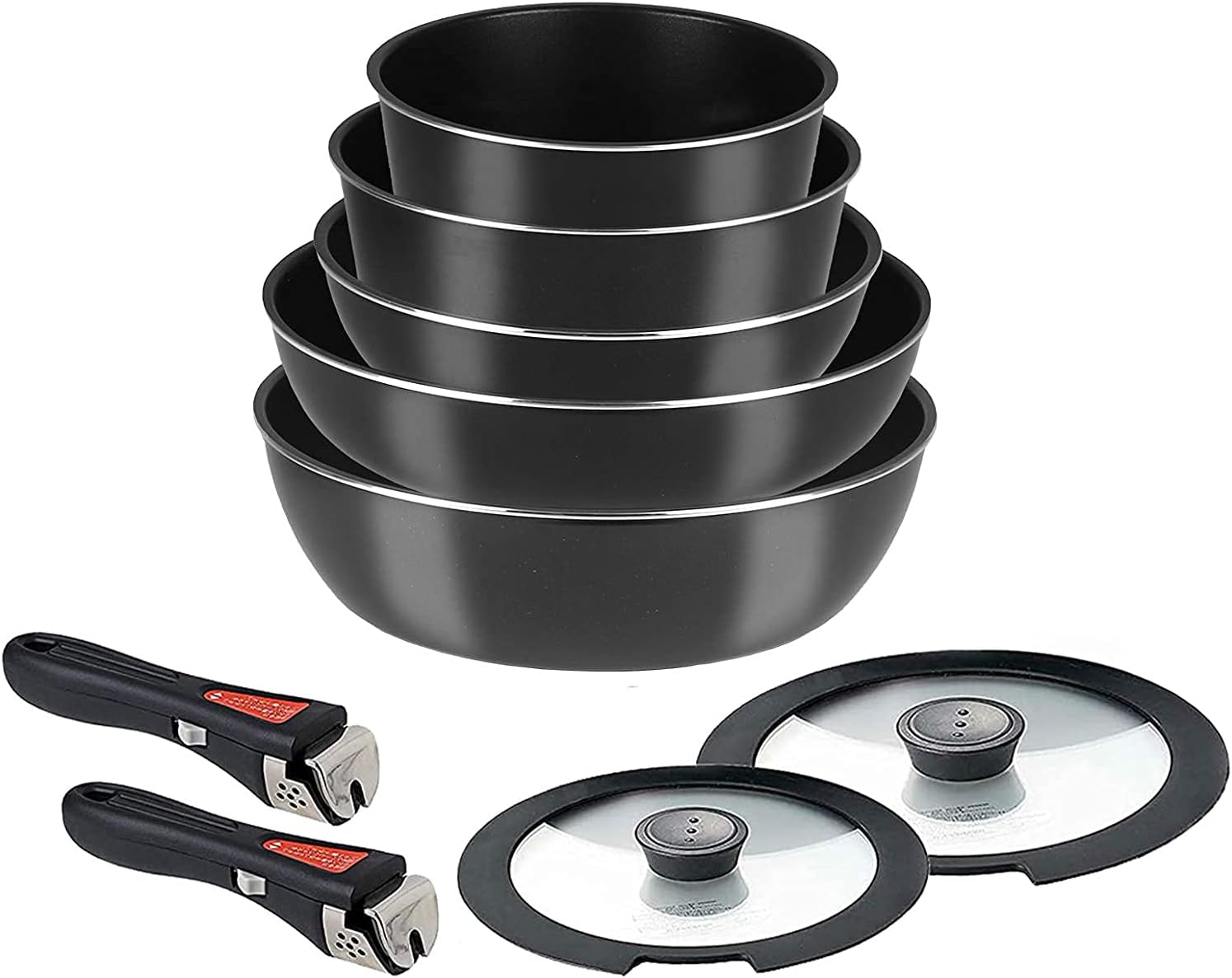 Amazonプライム感謝祭特価!マルチポット16cm、マルチポット20cm、フライパン20cm、フライパン26cm、深型フライパン26cm、ガラス蓋16cm、ガラス蓋20cm、ハンドル×2本の9点セット。着脱式のハンドルの採用により、重ねてコンパクトに収納できます。金属ヘラが使える、ダイヤモンド粒子を配合した内面3層強力コーティングの「ブルーダイヤモンドコート」。汚れやコゲがこびりつきにくく、お手入れラクラク。ガス火専用です。IHクッキングヒーターには使用できません。