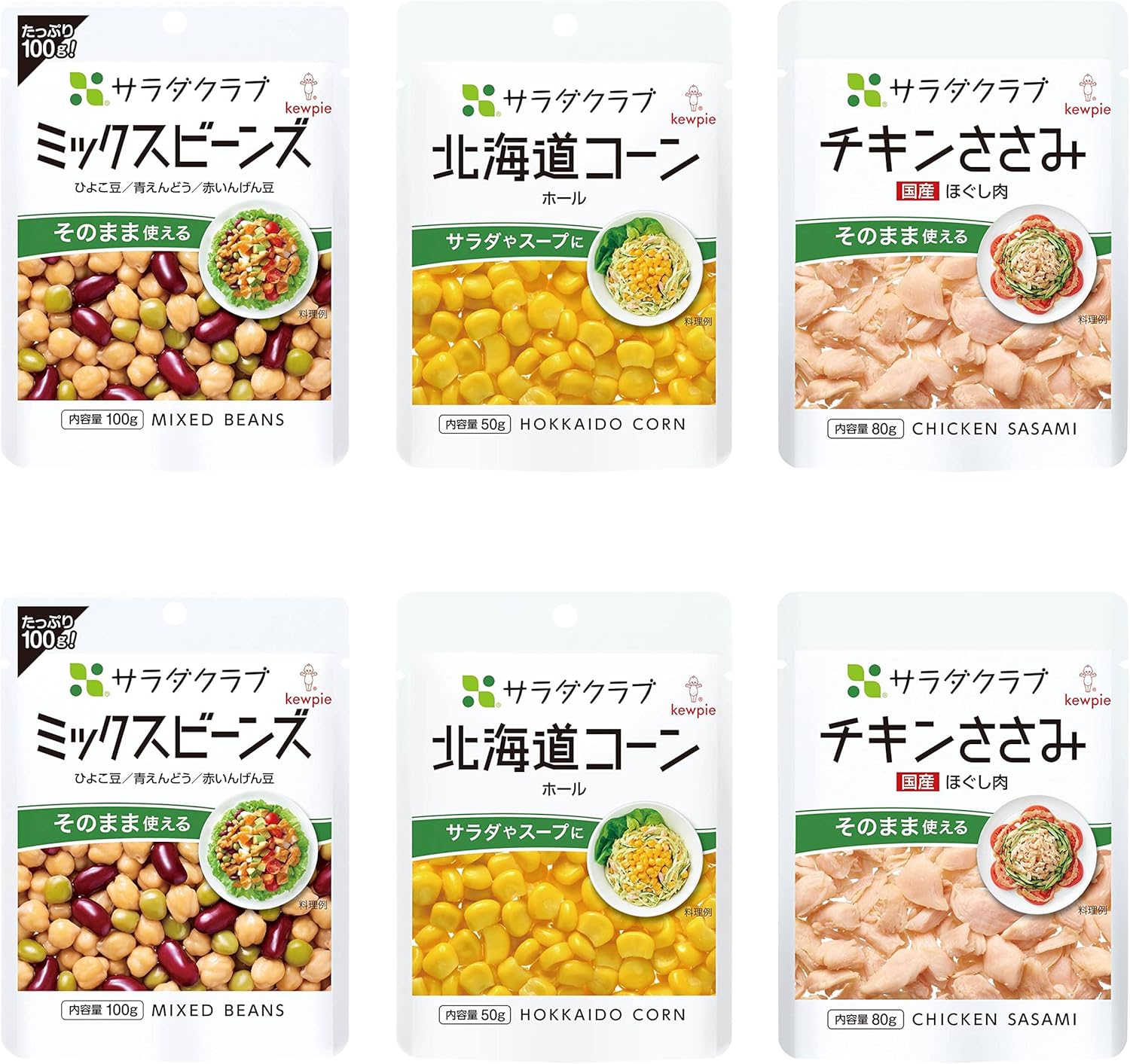 タイムセール特価!サラダクラブトッピングビックパック アソート(北海道コーンホール×2・ミックスビーンズ×2・チキンささみ×2)セット。北海道コーン(ホール)は、コーンの甘みと食感が楽しめます。チキンささみ(国産)は、ほんのりと塩で味付けし、サラダのトッピングに合うチキンに仕上げています。ミックスビーンズは、3種類の豆それぞれのおいしさが楽しめます。「まめつや製法」(特許第3724463号)で見た目もつややかに料理を彩ります。Amazonプライム会員又は2,000円以上の注文で送料無料。それ以外は送料400円です。