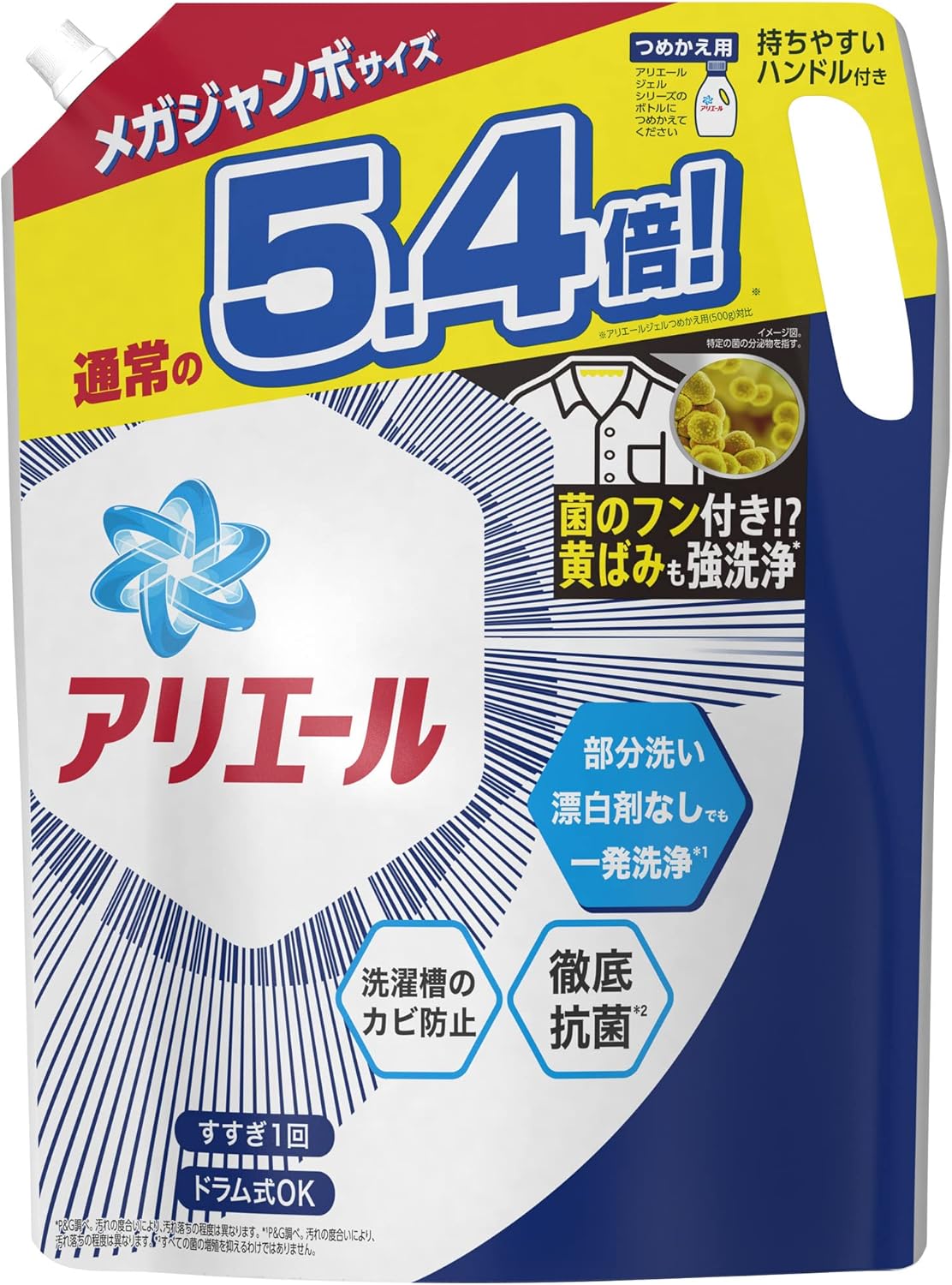 Amazonブラックフライデー特価!抗菌力x洗浄力のアリエールで、菌のフンつき黄ばみも一発洗浄します。これ1本で生乾き臭・汗臭・靴下臭も一発消臭。洗濯槽クリーナーなしでも洗濯槽のカビを防止します。もちろん徹底抗菌。液だれ防止キャップなので、嫌な液だれもしっかり防ぎます。Amazonプライム会員又は2,000円以上の注文で送料無料。それ以外は送料400円です。